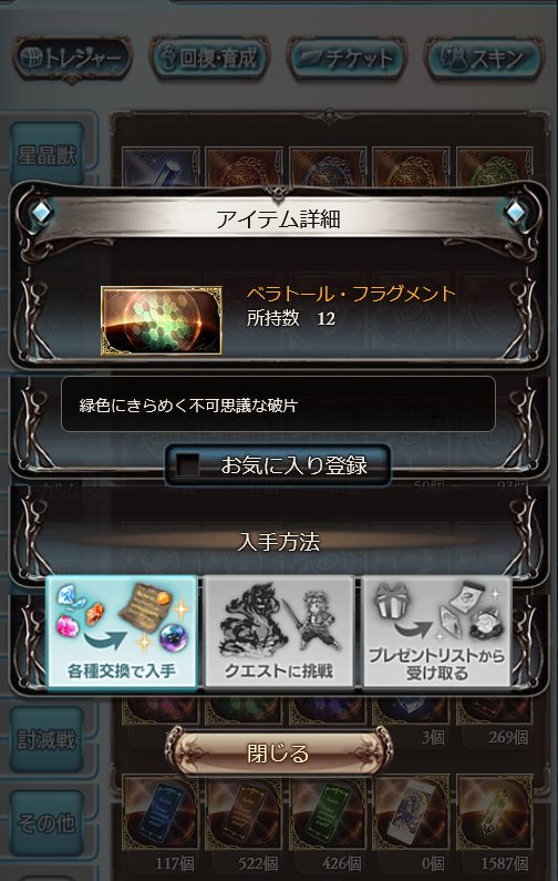ベラトール・フラグメントを集め中です。