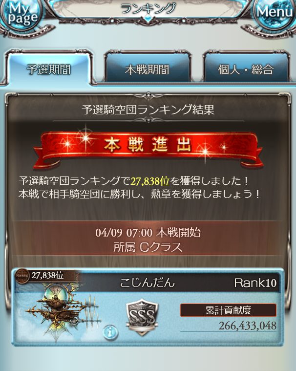 ボッチ騎空団の上、初の古戦場だったので、