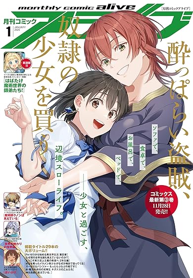 「盗賊」×「奴隷」の辺境ほのぼのスローライフ、コミックス最新刊発売記念表紙!今号はコミックス最新第3巻が11月28日に発売する大人気スローライフファンタジー、[酔っぱらい盗賊、奴隷の少女を買う]が表紙に初登場!カラーは[酔っぱらい盗賊、奴隷の少女を買う][はばたけ魔術世界の師弟たち!][魔術師クノンは見えている][世界の終わりの世界録][…