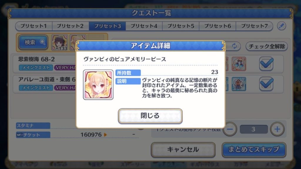 ハードクエストは、前編後編両方回せるので、メモリーピース集めがはかどる~。