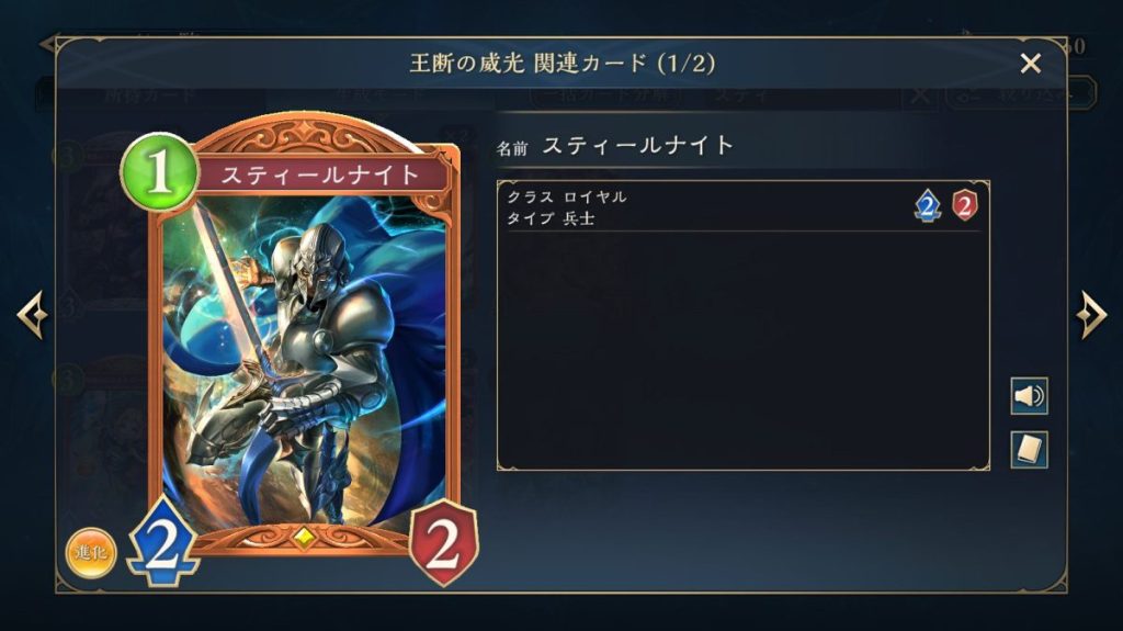 進化した時、「スティールナイト」2枚を場に出し、【突進】付与。