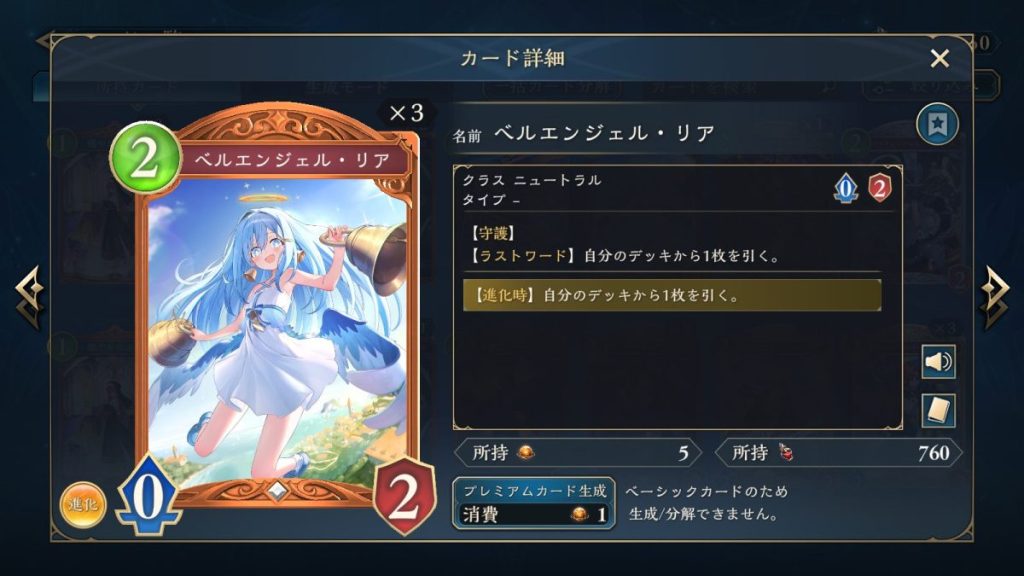 ベルエンジェルだと、手札がパンパンで、